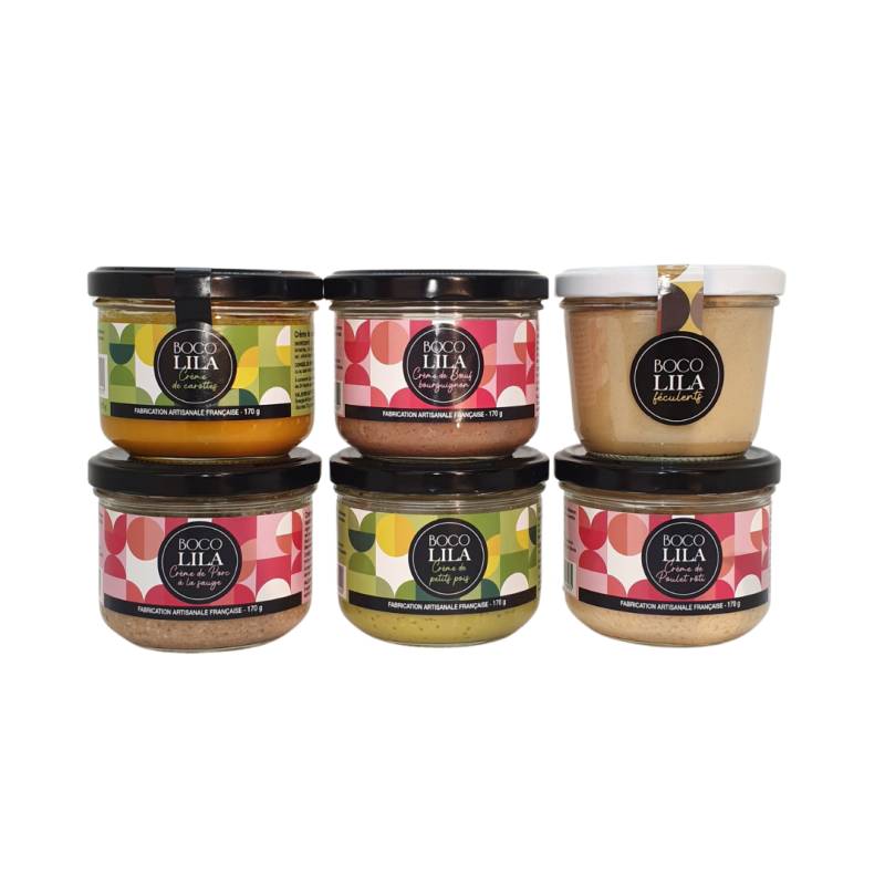 Pack de 3 menus de Mixés Gourmands : poulet rôti et petits pois, bœuf bourguignon et crème de carottes, sauté de porc à la sauge et gratin dauphinois.